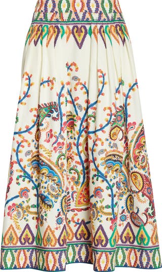 Crisp Italian-cotton voile provides a fresh canvas for a kaleidoscopic mix of vibrant flora and house-signature paisley motifs on this pleated A-line skirt—bringing a boho-eclectic element to your warm-weather wardrobe.