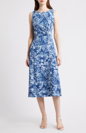 Floral Pleat Waist Sleeveless Midi Dress