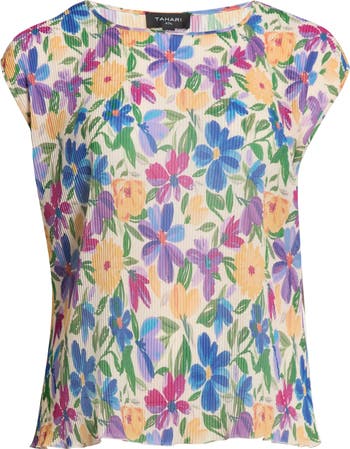Add some gorgeous texture to your workwear wardrobe with this slinky plissé top covered in a vibrant floral print.