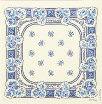 The Bandana 100% cotton floral print navy made in Japan 55x55cm, a testament to Fortela's dedication to timeless elegance and sartorial craftsmanship. Woven in Japan, this bandana features a distinctive floral print, adding a touch of sophistication to any look. Experience the artistry and individuality that define Fortela, with this exquisite accessory.