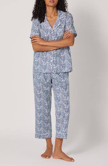 Turn any night into a slumber party with these soft, breathable jersey PJs featuring a charming floral print framed in contrast piping for stunning dimension.