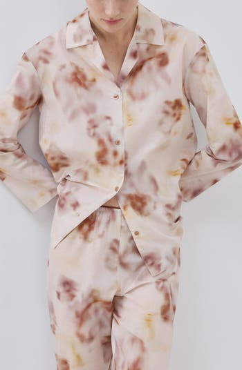A hazy floral print adds to the dream-like vibe of this button-up pajama top cut from breathable cotton.