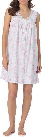 Slumber sweetly in this breathable cotton pointelle chemise covered in delightful blooms and punctuated with flower-shaped Akoya shell buttons.