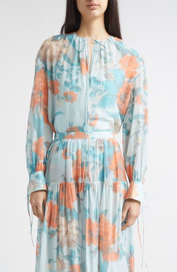 This airy and romantic top is made from lightweight cotton-silk voile and printed with a dreamy poppy motif. Delicate ties at the split neckline and cuffs create soft volume and beautiful movement. From a renowned British fashion house celebrated for narrative-driven design and meticulous craftsmanship, it delivers a poetic touch to everyday dressing.