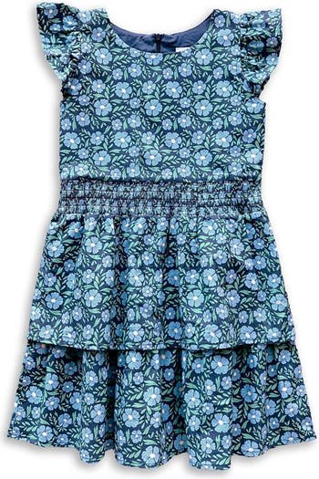 Florence Eiseman Floral Print Dress With Waist Ruching, Main, color, Blue Floral