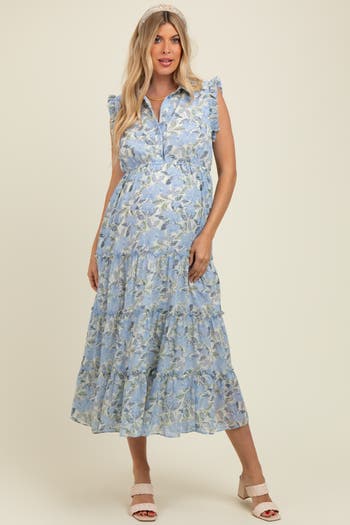 Embrace comfort and style with this Floral Print Frilled Pocketed Maternity Midi Dress. Designed to flatter your growing bump, it features a soft, breathable fabric that moves with you throughout the day. The dress includes delicate frilled sleeves and a tiered skirt for a feminine, flowing silhouette. Convenient pockets add a practical touch, perfect for keeping essentials close at hand. The elasticated waistband offers gentle support and adjustable comfort, making it an ideal choice for every trimester. Effortlessly chic for casual outings, baby showers, or weekend brunches, this dress is a versatile addition to your maternity wardrobe.