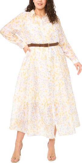 Sunny blooms charm this lightweight linen-kissed shirtdress made with a flouncy frilled hem for graceful movement.