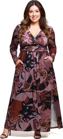Timeless and ready for any occasion, this gray floral wrap plus size maxi dress is the perfect balance of comfort and elegance. The deep V neckline and classic wrap silhouette create a flattering shape, while the long sleeves and maxi length provide full coverage for a polished finish. A side slit adds a touch of movement and allure, making it ideal for both day and evening wear. Crafted from a soft, stretchy polyester blend, this dress ensures comfort while maintaining a sleek look.