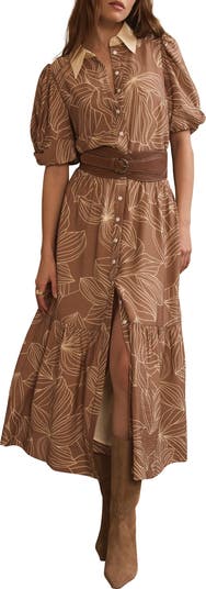 Floral Print Maxi Shirt Dress with Puff sleeves