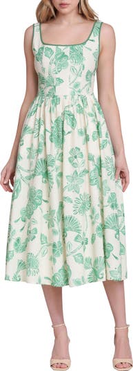 A floral print brings soft color to this linen-blend midi dress designed with a sleeveless silhouette and scoop neckline and paneled bodice construction for a structured fit. Contrast piping at the neckline and armholes adds crisp definition, while side-seam pockets add everyday ease.