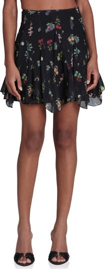 Floaty ruffles enhance the graceful movement of this soft chiffon miniskirt covered in a garden-inspired print.