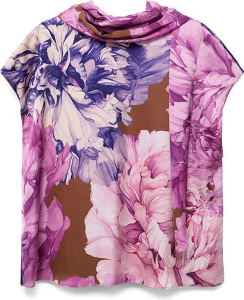 A floaty scarf adds graceful movement to this lightweight top made with a sophisticated mock neck and romanced by allover blooms.