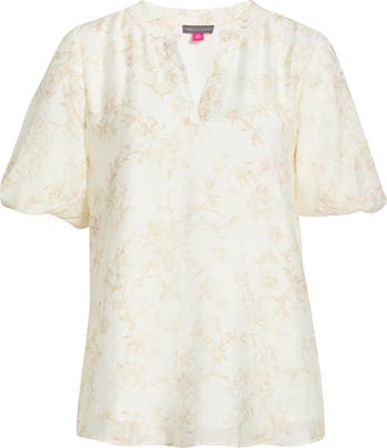 Light and romantic, this floral-print top is cut from airy woven fabric for an easy, breathable feel. Short puff sleeves add soft volume, while a flattering V-neck keeps the silhouette fresh and effortless.