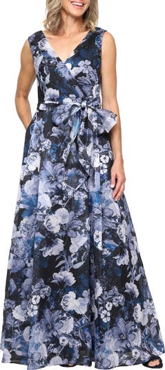 A crepuscular floral print adds to the evening-ready vibe of a sleeveless maxi dress styled with a gently fitted crossover bodice, cinchable waistline tie and floor-skimming A-line skirt.