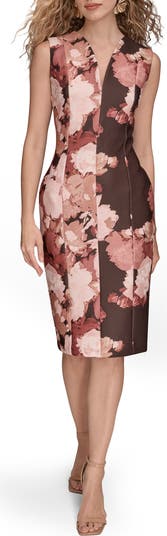 Blushing blooms romance this sleeveless sheath made with vertical seams to enhance it's figure-skimming silhouette.