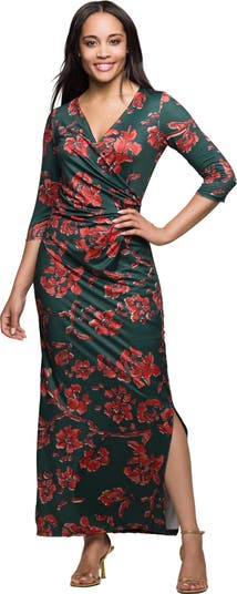 Add a bold and stylish touch to your wardrobe with this green floral print maxi dress. Designed with a flattering V neckline and three quarter sleeves, this fitted silhouette highlights your curves while offering all day comfort. The side slit adds a modern detail that allows for easy movement, making this dress perfect for both casual outings and evening events.