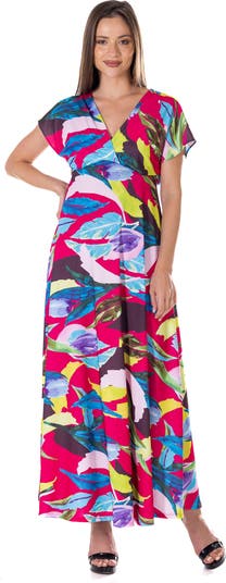Indulge in the epitome of femininity with the 24seven Comfort Apparel Womens Floral Print V Neck Empire Waist Cap Sleeve Maxi, a radiant masterpiece that effortlessly marries style and comfort. A vision in bright pink floral print, this maxi dress boasts a v shaped neckline and back design that exudes sophistication. The style cap sleeves add a touch of relaxed elegance, while the empire waist ensures a flattering silhouette for all body types. With a classic maxi length, this dress is a versatile wardrobe staple, seamlessly transitioning from a casual summer event to a laid back garden wedding. Whether you are the center of attention or a chic wedding guest, this comfortable maxi dress effortlessly captures the essence of casual and dressy, making it a timeless addition to your collection.