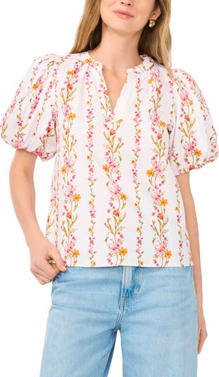 Floral Puff Sleeve Organdy Top
