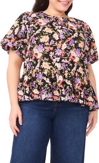 Pretty puff sleeves frame this bloom-printed top made from a lightweight linen-kissed fabric and designed with a fluttery peplum.
