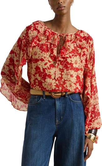 Rippled in ruffles and tossed with pretty blooms this graceful top is easy to style up or down.