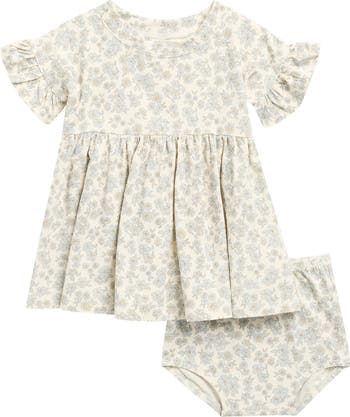 Ruffle-trimmed sleeves frame this adorable T-shirt dress made of supersoft organic cotton and paired with matching bloomers that complete baby's look.