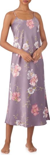 Painterly flowers fall around this smooth satin nightgown that's seamed for a graceful curve-skimming fit.