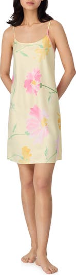 Set the mood for a little R&R in this fluid satin chemise that feels extra romantic in a watercolor floral print.