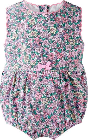 Sweetly vintage and beautifully detailed, the Floral Scalloped Bubble is a timeless piece designed for picture-perfect moments. Featuring a delicate allover floral print in soft pinks, lilacs, and fresh greens, this charming silhouette evokes the romance of an English garden in bloom.