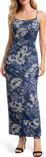 Painterly florals wash across this slinky maxi dress designed with a scoop neckline and finished with an alluring side slit.