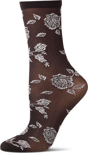 Jacquard blooms blossom along the sheer knit of these fabulous crew socks.