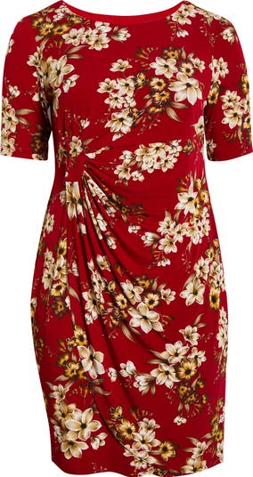 Side ruching brings soft definition to this desk-to-dinner knit dress adorned in pretty blooms.