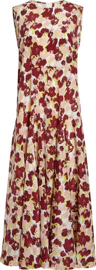 This sleeveless maxi dress made from silk crêpe de chine features Marni's spring '26 Secret Bouquet print—a painterly floral pattern with a spontaneous freehand effect. An Empire waist shapes the bodice, while a curved front inset creates flowy fullness in front.