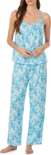 These cotton-blend pajamas pair a cami with wide-legs pants all covered in a floral print that brings a boho sensibility to the sweet-dreams style.
