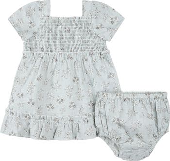Baby will be looking precious in this airy cross-hatch sundress made of lightweight cotton printed with vintage-inspired flowers. It features a comfortable smocked bodice, sweet ruffles and matching bloomers that complete the look.