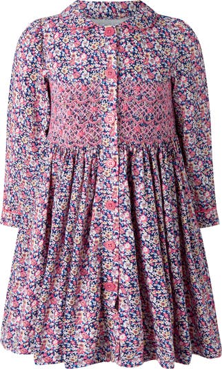 Floral Smocked Button-Front Dress