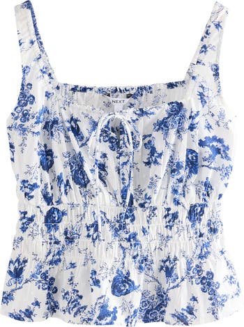 Smocked detailing gives a curve-hugging fit to this breezy cotton camisole made of lightweight clip-dot chiffon.