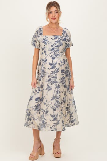 Embrace effortless elegance with this floral midi maternity dress designed for comfort and style throughout your pregnancy. Featuring a flattering square neckline and charming puff sleeves, this dress offers a timeless silhouette that accentuates your baby bump beautifully. The flowy, A-line midi skirt moves gracefully, while the breathable fabric ensures all-day comfort. Perfect for special occasions or casual outings, its delicate floral pattern adds a touch of femininity. Pair with your favorite sandals or heels for a versatile look that celebrates your maternity glow with ease and sophistication.