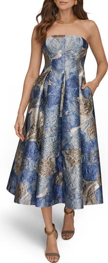 Floral Strapless Fit & Flare Midi Cocktail Dress