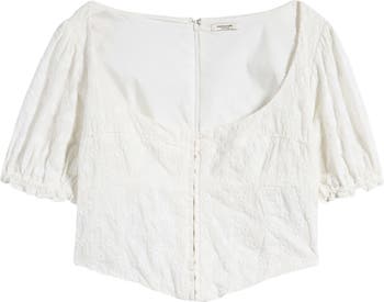 Delicate blooms texture this darling top designed with the sweetest of necklines.