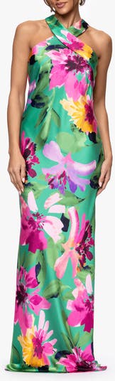 Floral Stretch Satin Column Gown