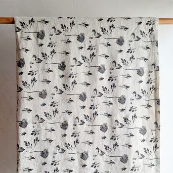 Transform your dining space with our 100% linen table cover featuring a beautiful grey hydrangea print, handcrafted in India. This exquisite table cover, measuring 70" x 108".