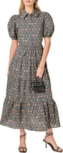 Floral Tiered Cotton Shirtdress