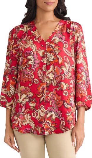 Add a vibrant color to lots of looks with a flowy top tumbled in showy blooms.
