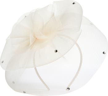 Make a dramatic entrance with this fascinator veiled with a mesh flower dotted with sparking crystals.