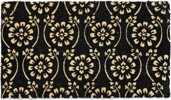 create an elegant entrance with this hand-spun and hand-painted coir doormat featuring a beautiful floral vine design. the black coir fibers effectively trap dirt and debris, while the design adds a touch of sophistication.