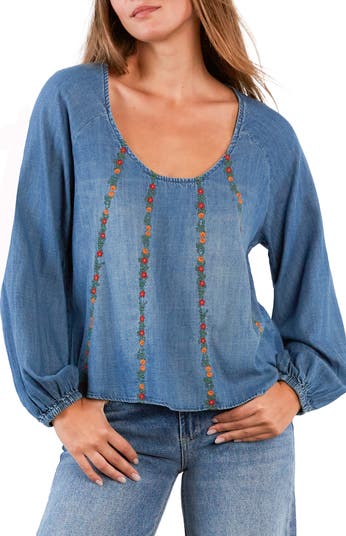 Patterned stitching brings an enchanting attitude to this billowy top that's ideal any day of the week.