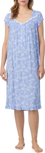 Creamy blooms pattern this ultrasoft stretch-cotton nightgown finished with the daintiest lace and pintucks at the bodice.