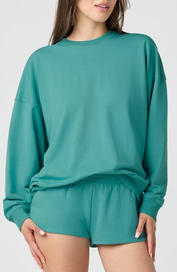 Take the day off in this soft cotton-blend sweatshirt made with dropped shoulders for an ultra-relaxed fit.
