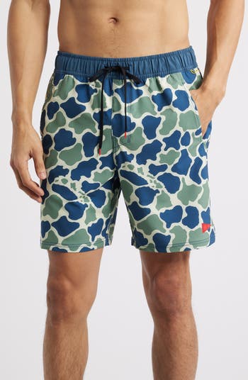 Stretchy, quick-drying fabric keeps you comfortable in and out of the water in swim trunks made with durable stitching and a stay-put closure in the waist. Multiple pockets keep on-land essentials stowed and easy to access.