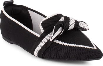 A knotted bow and bold colorblocking add stunning dimension to a pointy-toe loafer featuring a breathable knit upper and premium underfoot cushioning.